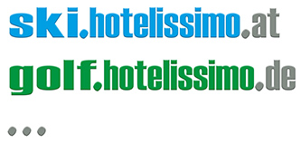 "ski@hotelissimo.ch" bewirbt ein Angebot in der Schweiz, thalkirch@hotelissimo.at ein Sommer-Angebot in Österreich.